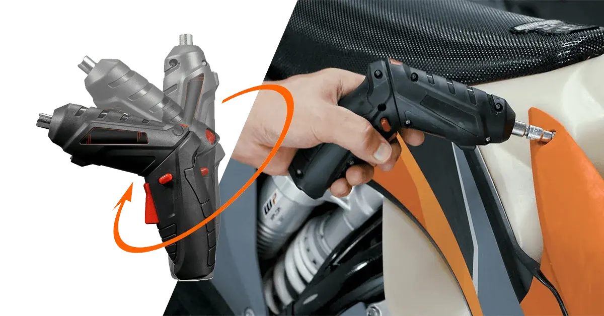 The Apex Drill pivots on a hinge. In seconds, you can transform it from a power drill to a precision electric screwdriver.