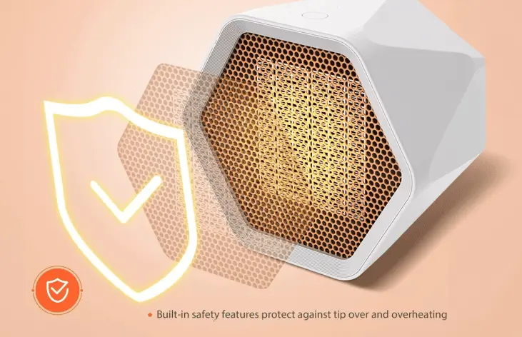 The Hexa Heat also has a Built-in timer to automatically turn it off while you sleep or when you’re gone. And it has a Built-in kill switch that shuts it off in case it accidentally falls over.